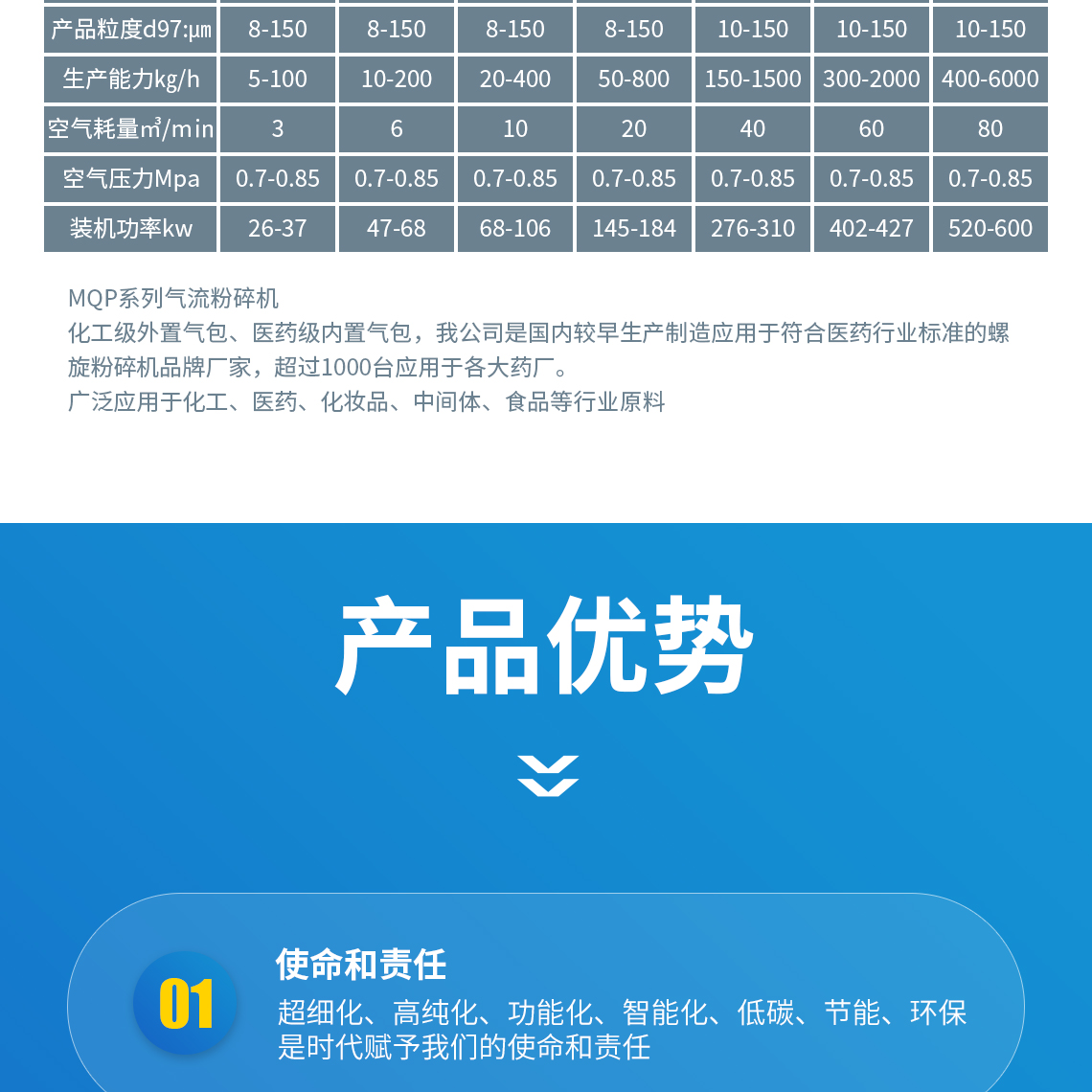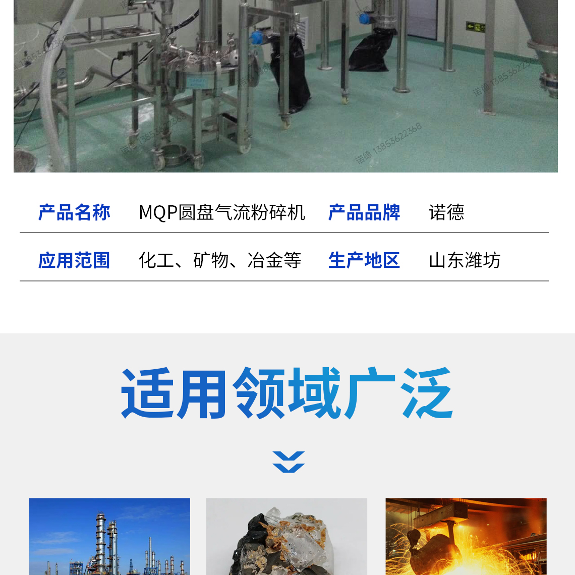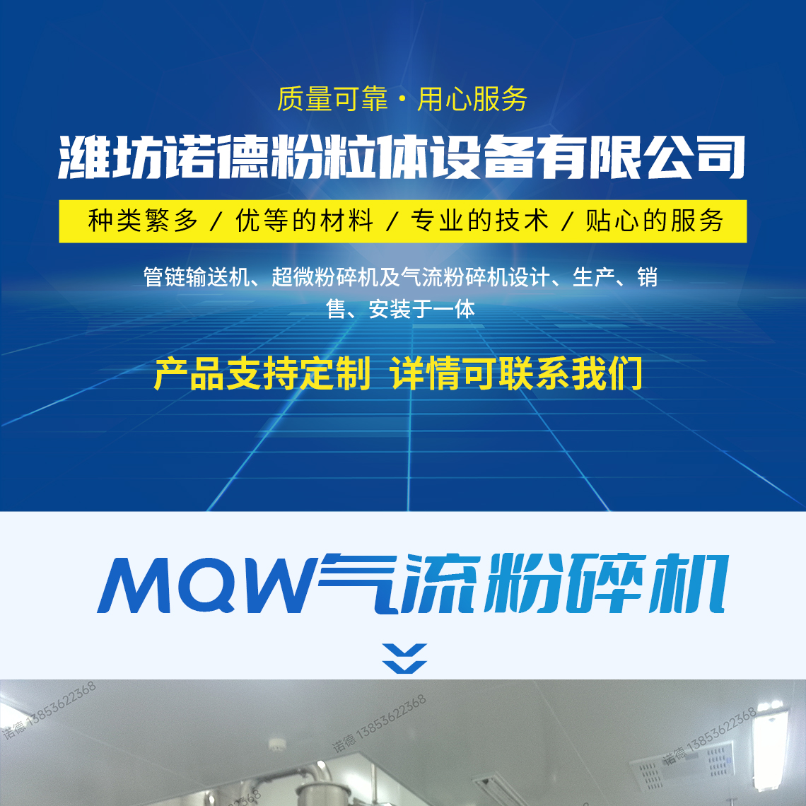 氣流粉碎機(jī)與旋風(fēng)分離器、除塵器、引風(fēng)機(jī)組成一整套粉碎系統(tǒng)。壓縮空氣經(jīng)過濾干燥后,通過拉瓦爾噴嘴高速噴射入粉碎腔,在多股高壓氣流的交匯點(diǎn)處物料被反復(fù)碰撞、磨擦、剪切而粉碎,粉碎后的物料在風(fēng)機(jī)抽力作用下隨上升氣流運(yùn)動(dòng)至分級(jí)區(qū),在高速旋轉(zhuǎn)的分級(jí)渦輪產(chǎn)生的強(qiáng)大離心力作用下,使粗細(xì)物料分離,符合粒度要求的細(xì)顆粒通過分級(jí)輪進(jìn)入旋風(fēng)分離器和除塵器收集,粗顆粒下降至粉碎區(qū)繼續(xù)粉碎。