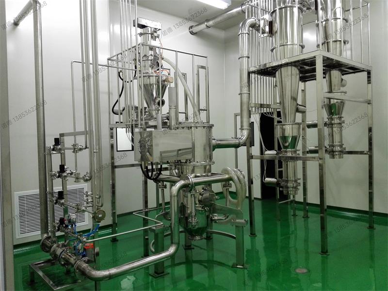氣流粉碎機(jī)與旋風(fēng)分離器、除塵器、引風(fēng)機(jī)組成一整套粉碎系統(tǒng)。壓